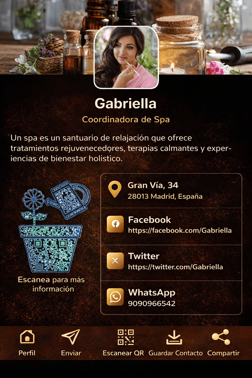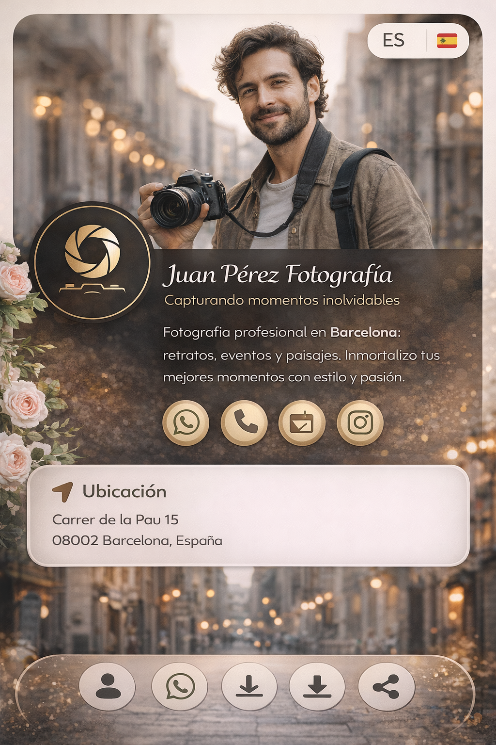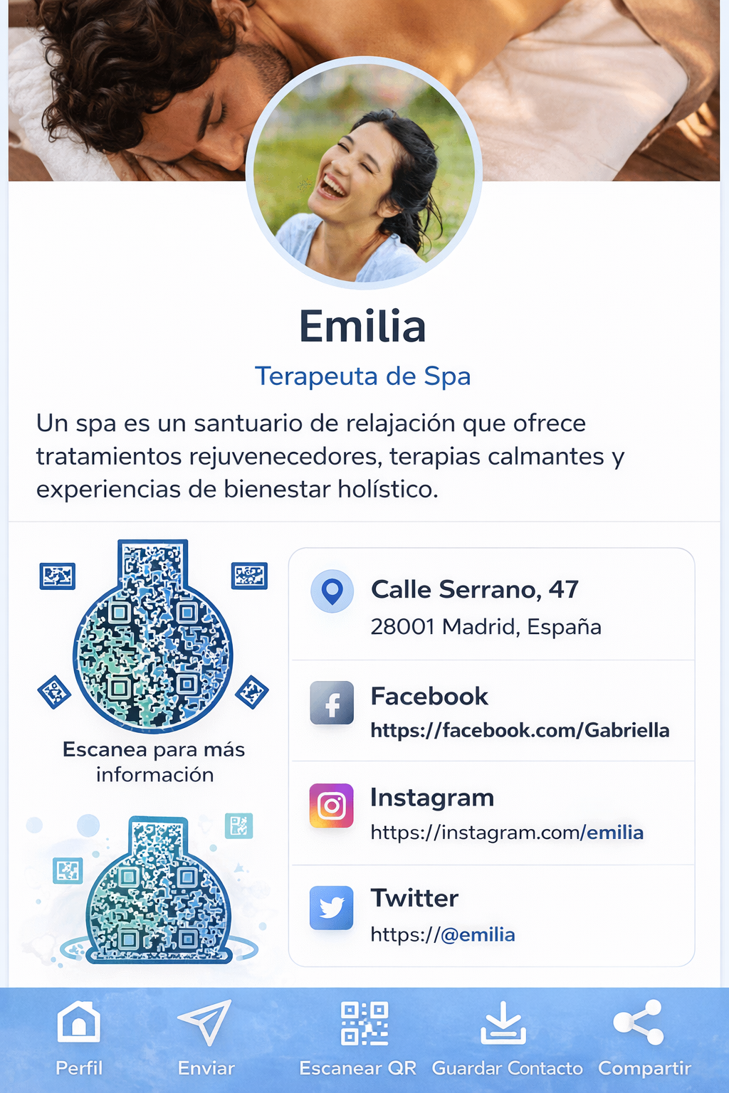 Ejemplos reales de tarjetas NFC y QR para negocios en España. El cliente no configura nada: te contacta, te dice qué necesita y tú le entregas su tarjeta lista (NFC + QR + enlaces).