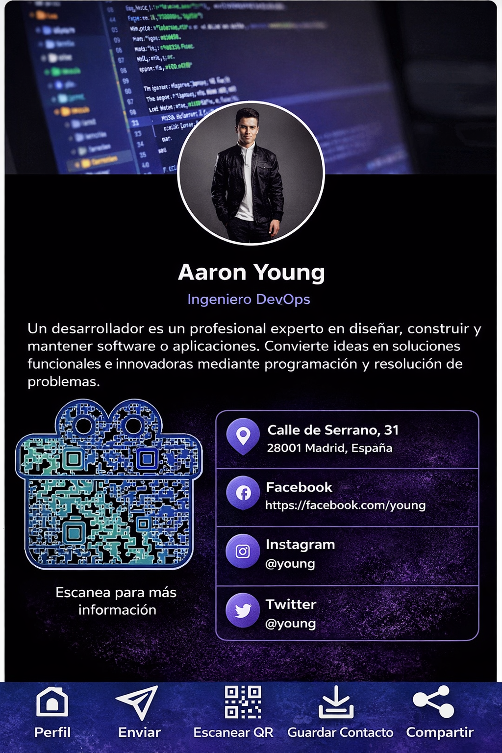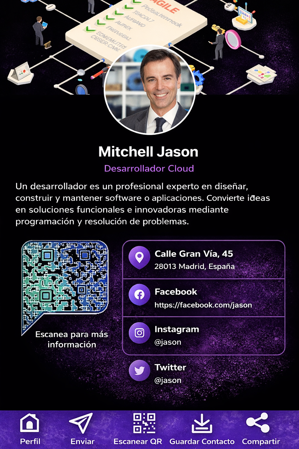 Moderniza tu imagen profesional con tarjetas digitales que integran NFC y QR para compartir datos, redes y documentos al instante y sin apps.